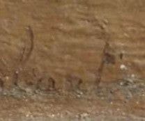 The painting's gold-carved wood frame has an avocado velveteen outer mat, which is estimated to be from the 1960s era. There is an overall crackle; in some areas, there are chips of missing paint, as shown in the images. Restoration will likely need to be performed on this painting, yet it would be highly rewarding for a particular collector of fine French neo-classical paintings.